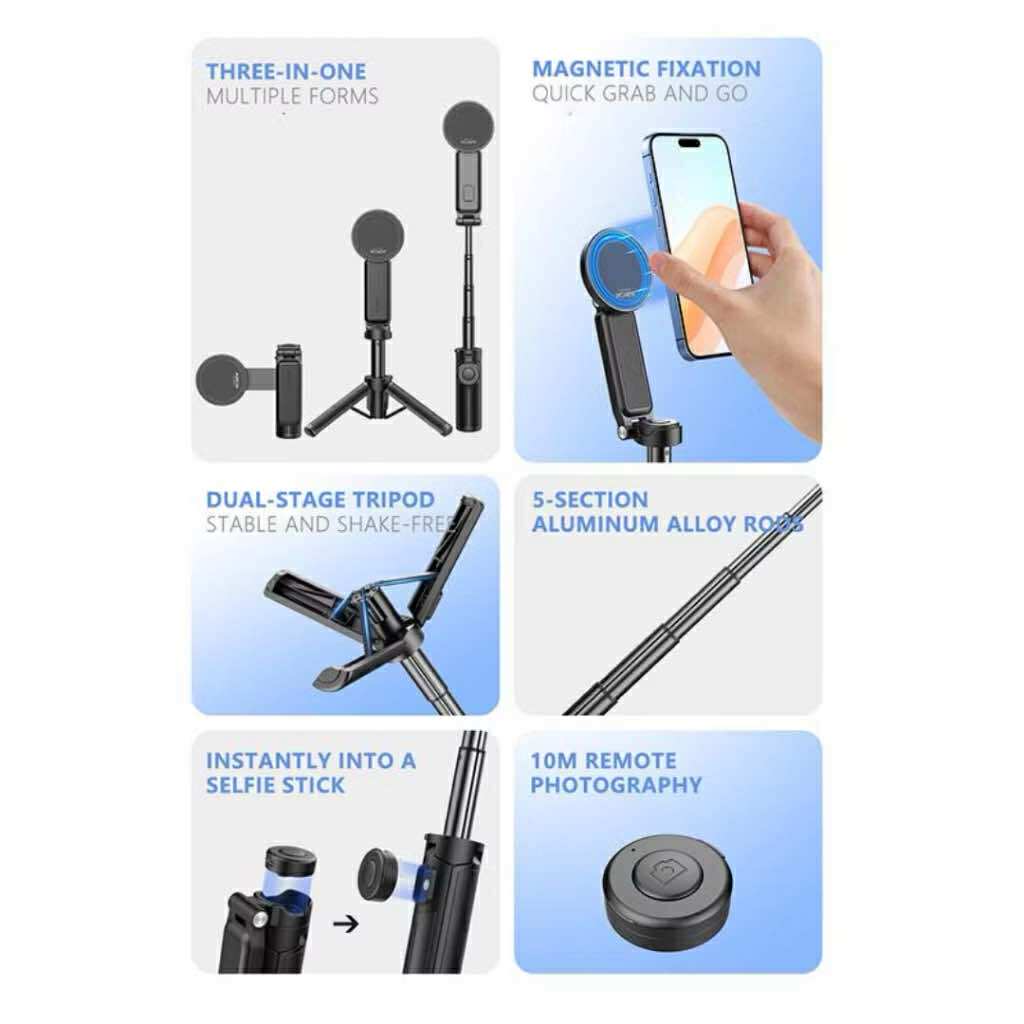 Wonew Z2 MagSafe Selfie Stick & Tripod: ที่จับโทรศัพท์แบบแม่เหล็ก 3in1 ที่มาพร้อมกับไม้เซลฟี่และขาตั้งมือถือ สะดวกในการใช้งาน 📱